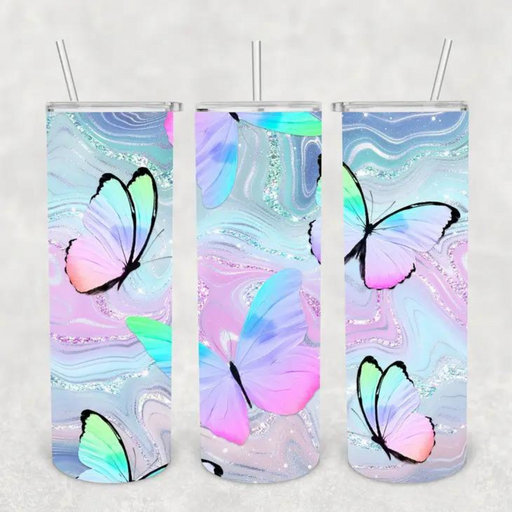 20oz Glitter Swirl Butterfly Travel Tumbler Mug Add a splash of color and sparkle to your hydration routine with our stunning 20oz Glitter Swirl Bu...