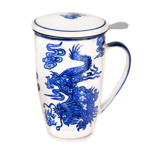 15oz 3.5" D x 5.5" H MUG WITH LID/STRAINER - DRAGON DISHWASHER SAFE