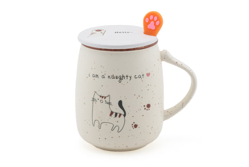 3.25" D x 4.5" H MUG WITH LID & 5.25"L SPOON 16 fl.oz. SPOON RANDOM COLOR WILL BE SHIPPED MADE IN CHINA MICROWAVABLE (MUG ONLY) DISHWASHER SAFE